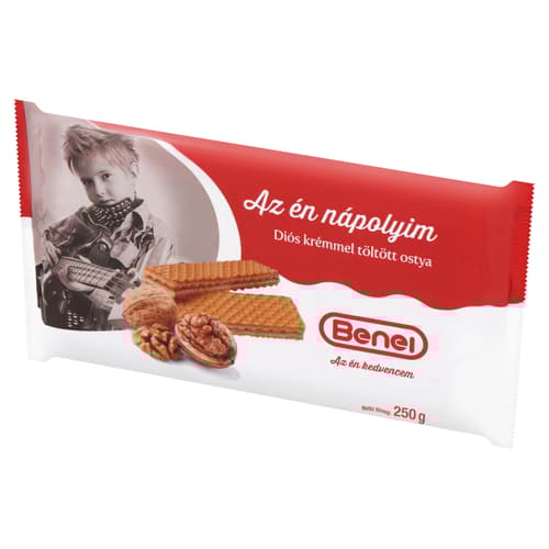 Diós krémmel több rétegben töltött roppanós ostya egyenesen a Beneitől. Ez a klasszikus finomság biztosan megkoronázza az étkezéseket.
