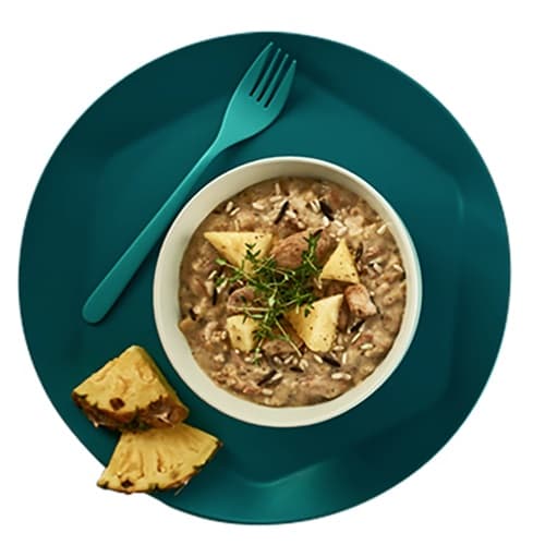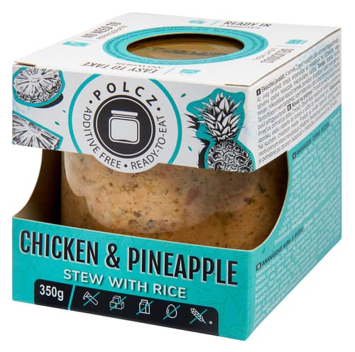 The product can be consumed immediately after heating. Pour the contents of the jar into a pan and heat it on the stove, or place it on a plate and put it in the microwave. After heating, you can season the pineapple chicken to taste with nutmeg, pepper, a hint of lemon juice or even fresh herbs.