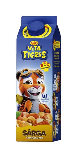 Vitatigris nem tudna fáról fára ugrálni alma, kajszibarack és sárgarépa nélkül. A Sárga Vitatigris pont ezeket a gyümölcsöket tartalmazza, hogy a gyerekek is magasra tudjanak ugrani!