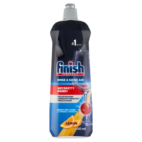 Even the most effective dishwasher formulas can leave behind water spots and wet dishes. To get your dishes completely dry, you often have to hand dry them. Finish Rinse & Shine Aid makes your dishes even shinier and gives you 100% better spot-free drying.** Use with Finish dishwasher detergents.**Twice the drying performance compared to using only Finish detergent.