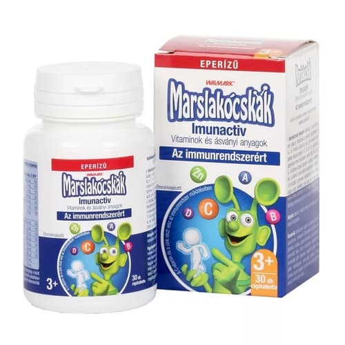 A Marslakócskák Imunactiv vitaminok és ásványi anyagok komplex formulája gyermekek számára rágótabletta formájában - ízletes, apró Marslakócskák.