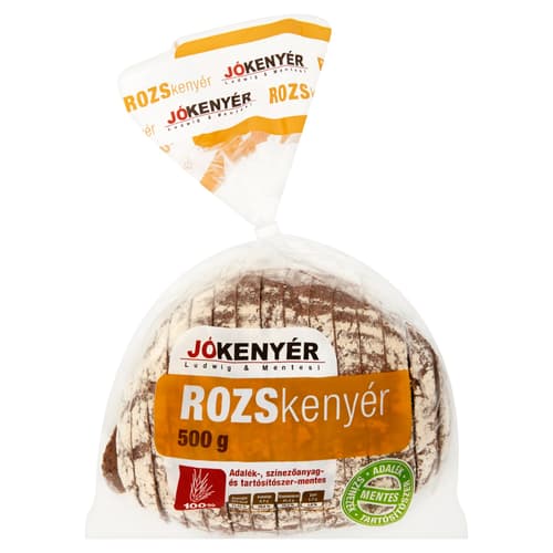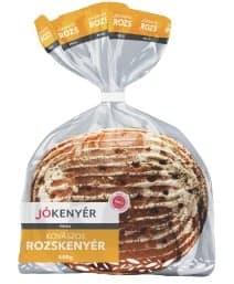 Rye bread is made from 100% natural ingredients, i.e. without the use of flavour enhancers, additives or colouring agents, or pre-prepared flour mixtures, like all JÓkenyér products. Flour milled from rye contains less fat and carbohydrates, and more minerals, than lighter-coloured wheat flour. It is rich in fibre, thus having a beneficial physiological effect on the human body. Frequent consumption has a favourable effect on bowel function and reduces cholesterol levels. We use sourdough made from freshly milled wholemeal rye flour in our own mill for the dough, and we use a long dough-making process, because the longer the time spent on the bread, the more the flavours come together and the longer the bread stays fresh and enjoyable. We recommend our rye bread to anyone who chooses a health-conscious lifestyle! It is also available in sliced and packaged form for your convenience.