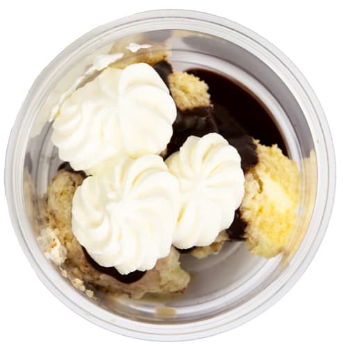 Soft sponge cake dough, heavenly chocolate sauce, with walnuts and whipped cream.