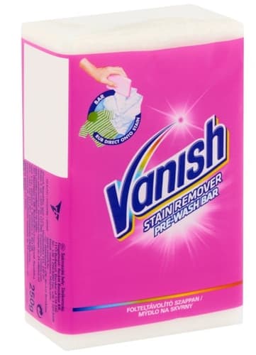 A Vanish szappan kiválóan alkalmas a makacs foltok eltávolítására. A Vanish nem tartalmaz fehérítőt vagy maró hatású szereket.