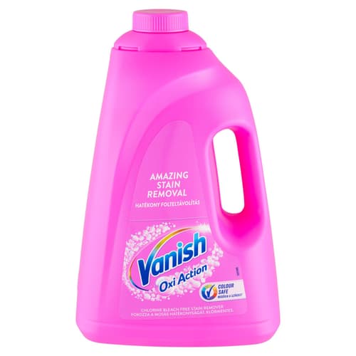 Vanish Oxi Action Stain Remover Liquid effectively removes stains in just 1 wash with the help of Oxi Action bubbles, yet it is gentle on fabrics. It is ideal for everyday textiles, such as cotton, and can be used on both coloured and white clothes. It is effective even at 30 °C.