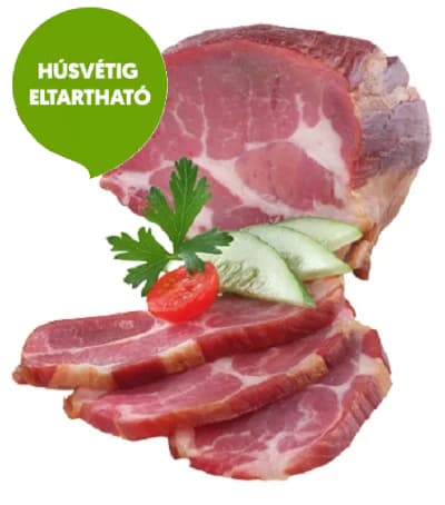 The Tóalmási smoked collar is made using boneless pork collar, which is dry-salted, traditionally cured, matured, and smoked with hardwood in a stone smokehouse. Apart from common salt, no other colouring, texture enhancer, or ripening accelerator additives are used during production.