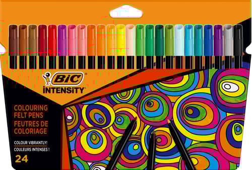 This pack contains a dazzling range of 24 shades of BIC Intensity Coloring felt-tip pens. Also suitable for adult coloring.