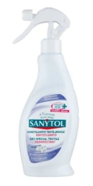 A Sanytol textil fertőtlenítő és szagtalanító spray a textíliák anyagának belsejében hatva elpusztítja a kórokozókat, és kellemetlen szagok ellen is hatásos. Megszünteti a dohszagot, a cigaretta és állat okozta szagokat, a konyhai szagokat, és visszaadja a textíliának a tiszta ruha illatát. Az extra finom permetező rendszernek köszönhetően a leheletfinom permet rendkívül gyorsan megszárad a textílián. Klórmentes. A terméknek hármas hatása van: Baktériumölő az EN 13697 szabvány szerint (5 perc alatt). Gombaölő az EN 13697 szabvány szerint (15 perc alatt). Vírusölő az A típusú influenza vírus (H1N1) ellen az EN 14476 szabvány szerint (5 perc alatt).