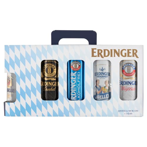 ERDINGER díszdoboz (1 Hefe + 1 Dunkel + 1 Alkoholfrei + 1 Helles + 1 pohár)
