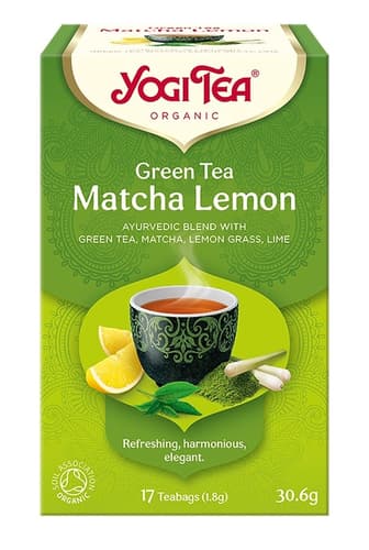 YOGI TEA® Green Tea Matcha Lemon is a refreshing tea with a wonderful combination of flavours. It contains organic green tea matcha, Indian lemongrass and lime fruit. This tea draws its refreshing power from the knowledge of Ayurvedic herbs and the art of Buddhist green tea preparation. The valuable matcha powder is produced in a refined process using selected tencha leaves, which are shaded before harvesting, thus helping to create the mild flavour.