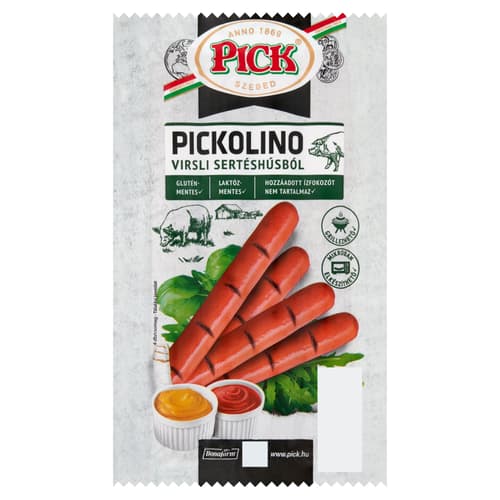 A new, peeled PICK frankfurter, made from pork, without casing. A unique, pleasantly smoky, delicious PICK frankfurter, in a consumer-friendly, 140-gram, vacuum-packed format. Quick and versatile preparation: can be boiled traditionally or in the pouch, or microwaved. Additionally, it can be grilled and baked to taste, but can also be consumed without heating. A further advantage of the PICKOLINO pork frankfurter is that it is gluten-free, lactose-free, and contains no flavour enhancers. PICKOLINO – Delicious in every way!