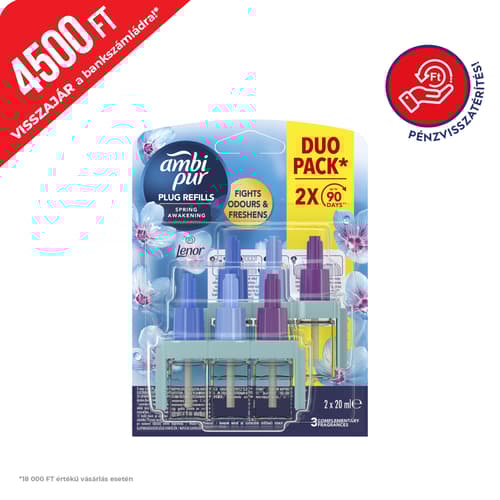 Ambi Pur 3Volution Spring Awakening continuously neutralises unpleasant odours and alternates 3 complementary fragrances, so the freshness is always noticeable. Lasts up to 90 days (on low setting, with 12 hours of use per day). Discover the double effect beauty of Spring Awakening (compared to basic products): More intense fragrance that can be smelled from further away, filling the room. The airy, green fragrance of Spring Awakening was inspired by the natural, spring freshness of Lenor. Let the pure and gentle scent of relaxation surround your senses! With standard diffusers, our noses quickly get used to the scents, which we then no longer perceive. Ambi Pur 3Volution offers continuously renewed freshness, as it automatically alternates 3 complementary, high-quality fragrances every 45 minutes. The Ambi Pur 3Volution refill can only be used with the Ambi Pur 3Volution electric diffuser, which fills your home with freshness and a pleasant scent every day of the week. 3Volution allows you to regulate the fragrance intensity, so it can help create the ambience that suits your mood at any time.