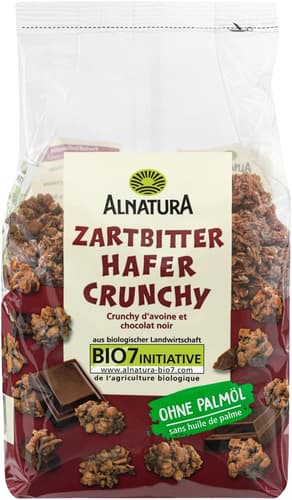 Crispy chocolate treat for breakfast or as a side: This crispy snack, made from whole grain oat flakes, delicately bitter dark chocolate, and dried coconut, is excellent with milk, yogurt, and their alternatives, or even enjoyed on its own. All agricultural ingredients in the Alnatura snack come from organic farming. Palm oil as an ingredient is consistently avoided.