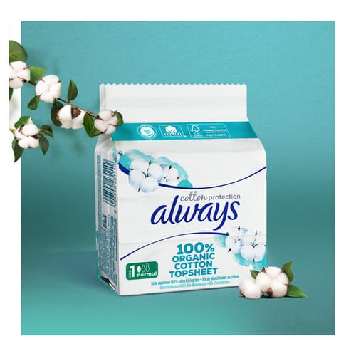 - Always Egészségügyi betét – megbízható védelem, 100%-ban organikus pamut fedőréteggel