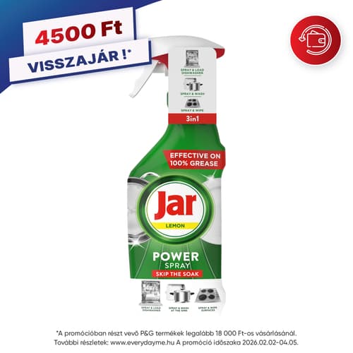 Eleged van az áztatásból és súrolásból? Íme az új Jar Power spray edényekre és konyhai felületekre! Hatékonyan elbánik akár a 100%-os zsírral is. A Jar Power spray könnyedén célba veszi a mindennapos szennyeződéseket. Használható gépi vagy kézi mosogatás előtt, valamint a konyhai felületek tisztításához is. Tisztaság és ragyogás erőfeszítés nélkül! A Jar Power spray elbánik a zsírral nemcsak az edényeken, de bárhol a konyhában. Új Jar Power spray. Elfújja a makacs zsírokat!