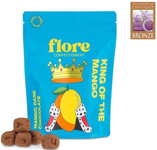 Flore Confectionery Mangó Király drazsé: Maracujás mangó zselé, étcsokoládé drazsé