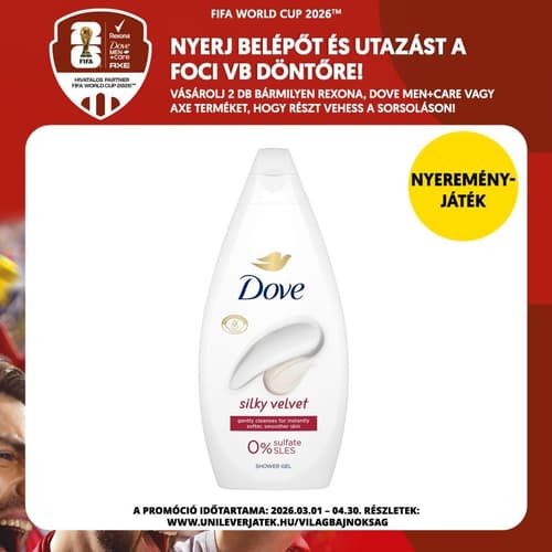A Dove Silky Velvet krémtusfürdő exkluzív bőrápolást biztosít a gyengéd hidratáló és tisztító összetevőknek köszönhetően. A Dove tusfürdők formulájának titka a bőrben természetesen előforduló és gyorsan felszívódó hidratáló összetevők tartalma. Ugyanakkor gyengéd szulfátmentes tisztító összetevőket tartalmaznak, így érzékenyebb bőrre is alkalmas a készítmény. Az első zuhany után a bőr simább és jobban hidratált lesz. A klasszikus lágy púder illatú Dove selymes bársonyos tusfürdő gyengéden tisztít az azonnali puhább és simább bőrért. A Dove a fenntarthatósággal is törődik, minden tusfürdő vegán és PETA Vegán tanúsítvánnyal rendelkezik, 99%-ban biológiailag lebomlik és 100%-ban újrahasznosított palackokban*. *sapka és címke nélkül