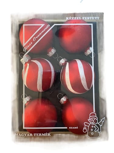 Szabó Üveg Üveggömb szett piros 6 cm 6 db-os hálós fényes és matt mintával