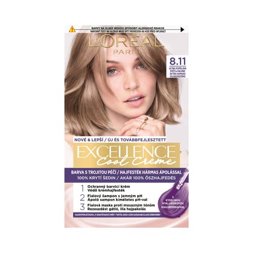 L'Oréal Paris Excellence Cool Creme 8.11 Extra hamvas világosszőke 72ml + 48ml + 12ml + 60ml