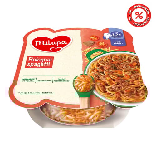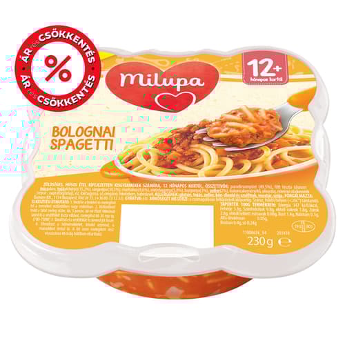 Milupa Bolognai Spagetti – ízletes és tápláló étel a 12 hónaposnál idősebb babák számára. Kiegyensúlyozott összetevőivel és könnyű állagával tökéletes választás a kicsik változatos étrendjéhez.