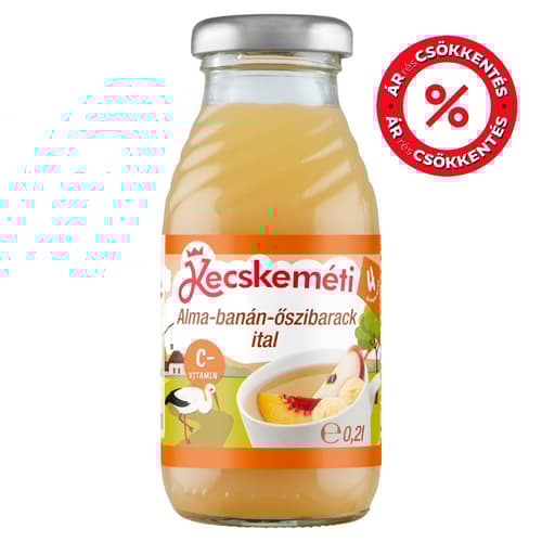 Kecskeméti Alma-banán-őszibarack ital: Az ízletes gyümölcsökből készült Kecskeméti bébiitalok az anyatejes táplálás első kiegészítői lehetnek 6 hónapos kor után. A hozzátáplálás megkezdése után, valamint kirándulás, játék közben a kicsik folyadékszükséglete megnő, ezért ügyelni kell a folyamatos, megfelelő mennyiségű és minőségű folyadékpótlásra.