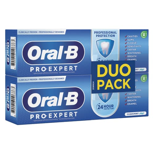 Az Oral-B Pro Expert Professional Protection klinikailag igazolt, fogorvosok közreműködésével kifejlesztett professzionális fogkrém tiszta érzést nyújt az egész szájüregnek, és napi két fogmosással 24 órán át védelmet nyújt a lepedékkel szemben.