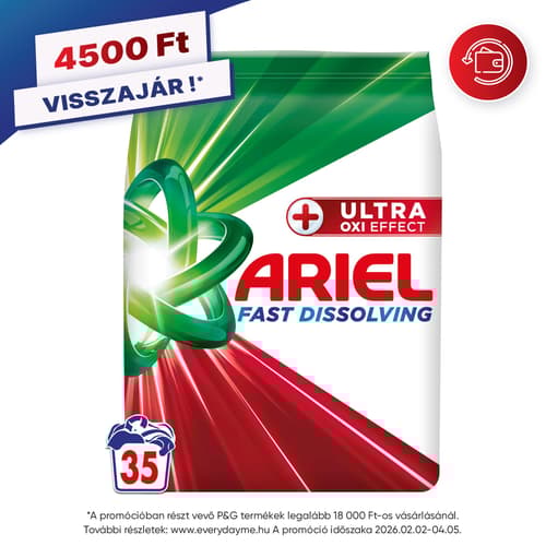 A promóció Procter & Gamble aktivitás, promócióban való részvételhez a www.everydayme.hu honlapon kell regisztrálni az online vásárlás után. További részletek és regisztráció: https://www.everydayme.hu/penzvisszafizetes