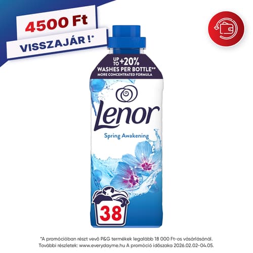 A Lenor Spring textilöblítő akár 7 napon át gondoskodik az ágynemű frissességéről (érezhető Lenor frissesség akár 1 héten át). Aktív szagsemlegesítő technológiája védelmet nyújt viselés közben a textíliáknak a kellemetlen szagokkal szemben. A hosszan tartó frissesség érdekében a mosószer mellé használjon Lenor textilöblítőt. Próbálja ki a hozzá illő Lenor Spring mosáshoz adható parfümgyöngyökkel