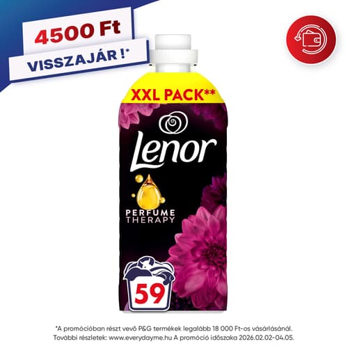 A Lenor Lotus Water & Diamond Figs textilöblítő 3x tovább tartó illattal (a Lenor Sensitive illatához képest) gondoskodik egész napon át a pihentető pillanatok élményéről. Illatanyaga egy csipetnyi illóolajat tartalmaz. Hunyja le szemeit, és lazuljon el. A lótuszvíz és gyémántfüge ötvözete által teremtett derűs, elegáns légkör a nyugalom érzését kelti.