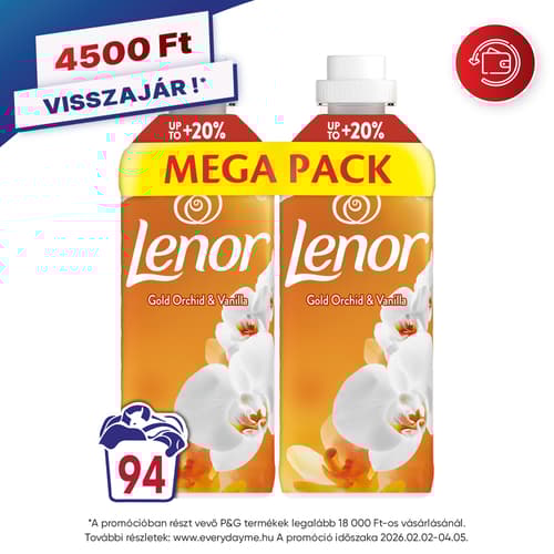 A Lenor Orchid & Vanilla textilöblítő 3x tovább tartó illattal (a Lenor Sensitive illatához képest) gondoskodik egész napon át a pihentető pillanatok élményéről. Illatanyaga egy csipetnyi illóolajat tartalmaz. Hunyja le szemeit, és lazuljon el. A nemes orchidea egzotikus akkordjai mesterien keverednek a vanília ínyenc jegyeivel, egy meleg, megnyugtató illatkaraktert alkotva. Próbálja ki a hozzá illő Lenor parfümgyöngyökkel együtt az ellenállhatatlan puhaság és frissesség érdekében.