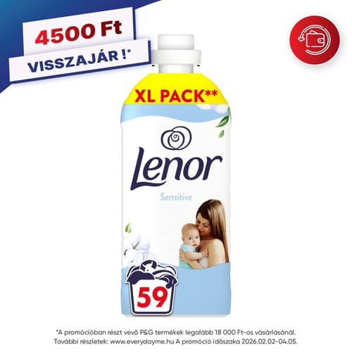 A Lenor Sensitive hipoallergén textilöblítő semleges illatot és mennyei puhaságot kölcsönöz a ruháknak. A formula érzékeny bőrűek számára készült, bőrgyógyászatilag tesztelt (mosott textíliákkal érintkező bőrön végzett vizsgálat), és rendelkezik az ECARF Európai Allergiakutató Alapítvány tanúsítványával.