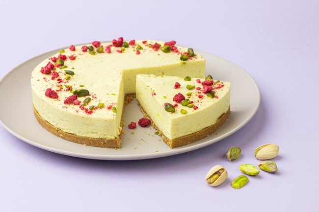 Alapja saját, magas rosttartalmú kekszükből és vajból készül, amelyre 100% pisztáciapasztából, friss sajtból és tejszínből álló krémréteg kerül. Liofilizált málnával és pisztáciával díszítve.