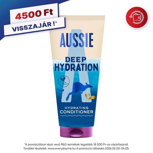 Szomjazó haj? Ne aggódj, nem hagyjuk magára! Az Aussie Deeep Hydration balzsam intenzív hidratálást nyújt a rendkívül vízhiányos haj számára. A jojoba-, avokádó- és ausztrál makadámdió-olaj tripla elegyével dúsított formula mélyen behatol a hajszálakba, nedvességgel tölti fel őket és táplálja a tincseket, ezáltal selymes, puha, sima és mélyen hidratált hajat hagy maga után. Vegán* összetételű, PETA tanúsítvánnyal rendelkezik, vagyis állatkísérlet-mentes. Az extra hidratálás érdekében használd együtt az Aussie Deep Hydration hajápoló termékcsalád többi tagjával. *Vegán formula: nem tartalmaz állati eredetű összetevőket vagy melléktermékeket