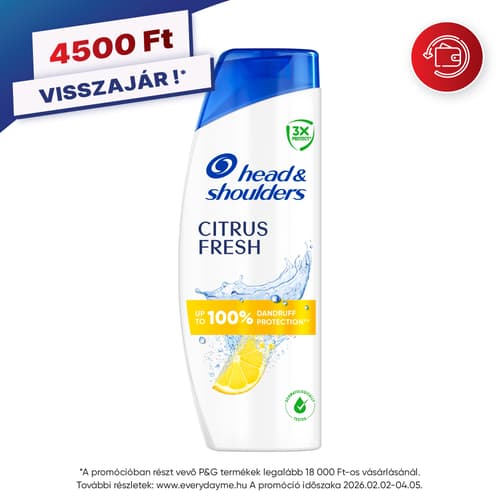 Head & Shoulders Citrus Fresh korpásodás elleni sampon zsíros hajra, amely még a legmakacsabb korpával szemben is felveszi a küzdelmet. Ez a mindennapos használatra, férfiak és nők számára kifejlesztett, friss citrusillatú sampon mikrobiom-egyensúlyt helyreállító formulájával a korpa kiváltó okát célozza meg, miközben megőrzi a fejbőr mikrobiom egyensúlyát. A látható és láthatatlan korpa ellen egyaránt hatékony, és akár 2x több védelmet nyújtó hatóanyagot juttat a pórusokba, megelőzve a makacs korpa visszatérését. Klinikailag igazolt, bőrgyógyászatilag tesztelt, kiegyensúlyozott pH-formulája tiszta és friss érzetű fejbőrt és hajat hagy maga után.