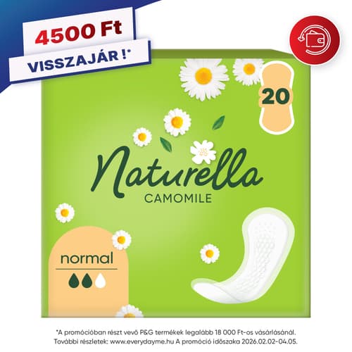 Hogy minden nap frissen induljon. A vékony és rugalmas Naturella Normal Camomile tisztasági betét kényelmes védelmet nyújt, hogy a viselésekor is önmaga lehessen.