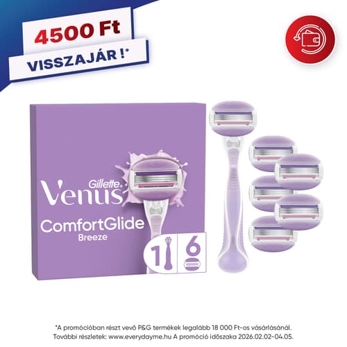 A Venus borotvapengéket a női test vonalaihoz terveztük. A Venus ComfortGlide Breeze női borotva 3 pengével rendelkezik, az alapos borotválásért és a hosszan tartó sima bőrért. A borotvabetétek krémezőcsíkjai friss illatú testvajat bocsátanak ki, hogy könnyed pengesiklást és kényelmet biztosítsanak. A billenőfejes kialakítás követi a test vonalait. Bármely Venus borotvabetét felhelyezhető a Venus markolatokra (a Simply Venus és az intim szőrzet borotválására készült Venus kivételével).