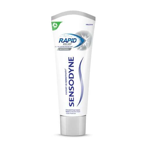 A Sensodyne Rapid Relief Whitening klinikailag bizonyítottan gyorsan enyhíti a fogérzékenységet.