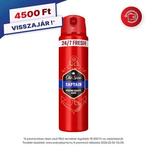 Élvezd az Old Spice Captain deo spray megállíthatatlan frissességet* és magabiztosságot sugárzó illatát. A gondtalan frissesség ezen fokán végre fontosabb feladatokra is koncentrálhatsz: például menő szerződéseket köthetsz, vagy beszélni taníthatod a halakat.