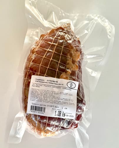 Hagyományos érlelésű füstölt kötözött combsonka hálóban , vákuumcsomagolt