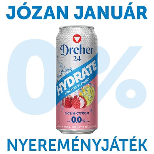 A Dreher 24 Hydrate Licsi-citrom egy alkoholmentes sör, mely nem csak felfrissít egzotikus ízvilágával, de speciális összetételének köszönhetően fokozza a víz felszívódását fizikai aktivitás során. A licsi egzotikus édességét és a citrom élénkítő savanykásságát hozza egyensúlyba, hogy igazán különleges ízélményt nyújtson. A termék nem pótolja a kiegyensúlyozott étrendet és az egészséges életmódot! Az opálosság és az esetleges üledékképződés a gyümölcslé jellegéből adódik.