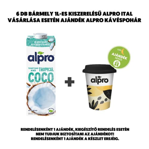 Az Alpro növényi alapú termékcsaládjának kedvelt itala 100%-ban növényi alapú, vegán, természetes módon laktózmentes. Kalciumforrás, B12-vitamint tartalmaz. Jutalmazd meg magad képzeletben egy kis trópusi napfénnyel, kóstolj bele a fincsi kókuszitalba! Csak dőlj hátra és élvezd a csábítóan egzotikus ízvilágot - amiben még hozzáadott cukor sincs*! Hmmm, csak nem megkóstolnád? Jó úton jársz!** * Kizárólag természetes módon előforduló cukrokat tartalmaz. **A termék kalciumforrás. A kalcium szükséges a normál csontozat fenntartásához. A jó egészséghez változatos, kiegyensúlyozott étrend és egészséges életmód javasolt.