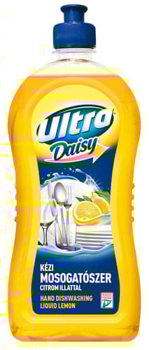 A megújult, üde citrom illatú Ultra Daisy kézi mosogatószer kíméletlen a zsírral és egyéb szennyeződésekkel szemben, de óvja a kéz bőrét az irritációtól. Sűrű habja hosszan hat, így gazdaságos használatot biztosít. Alkalmas porcelán-, kerámia-, üveg-, műanyag, fa-, fémedények és háztartási eszközök tisztítására. Nagy felületek tisztításához is ajánlott! Fürdőszobai és konyhai felmosáshoz, fényes járólapokhoz kitűnő, mivel nem hagy foltot a száradás után.