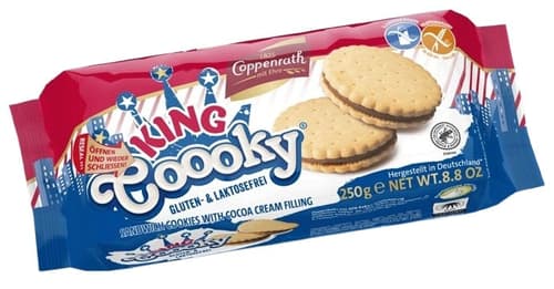 Ízletes glutén- és laktózmentes keksz, finom kakaókrémmel töltve.