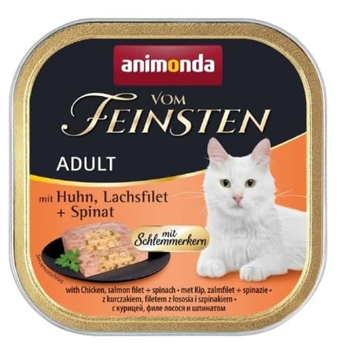 Animonda Feinsten Adult alutálkás nedveseledel felnőtt macskáknak, csirke-lazacfilé-spenót