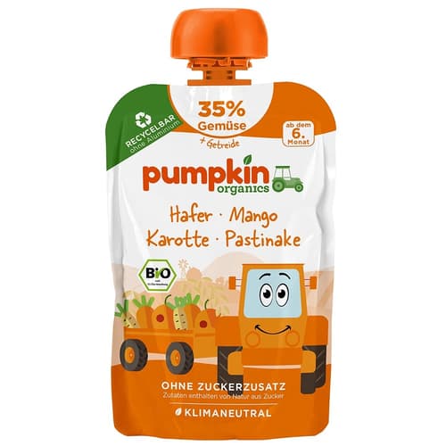 A Pumpkin Organics egy német márka, amely kifejezetten a babák és kisgyermekek egészséges táplálkozására specializálódott. Termékeik – például bio zabszeleteik, zöldséges püréik és ropogtatnivalóik – kizárólag 100%-ban organikus összetevőkből készülnek, hozzáadott cukor, só, tartósítószerek vagy mesterséges adalékanyagok nélkül. A márka küldetése, hogy a legkisebbek már életük első 1000 napjában megismerjék és megszeressék a zöldségek természetes ízvilágát, ezzel megalapozva a hosszú távon egészséges étkezési szokásokat.
