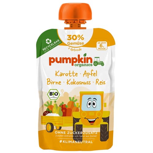 Pumpkin Organics Bio Alma körte kókusz rizzsel tasakos püré 6 hónapos kortól