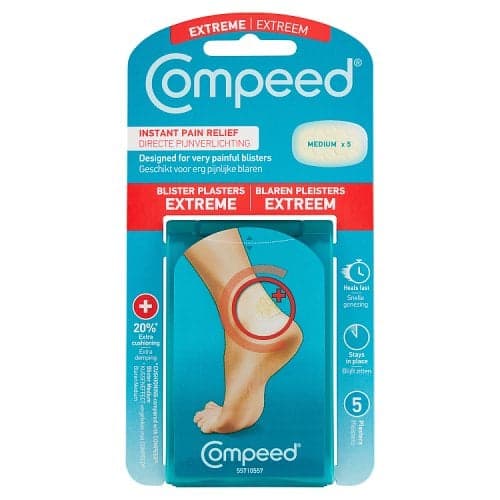 A Compeed Extreme vízhólyagtapasz a hidrokollid technológiának köszönhetően aktív, nedvszívó géllel segíti a nagyon fájdalmas hólyagok kezelését. Hatékonyan véd a dörzsölés ellen, gyors sebgyógyulást biztosít, és akár több napig is a helyén marad, így hosszan tartó védelmet nyújt. Ez az 5 darabos kiszerelés ideális választás, ha azonnali és megbízható megoldásra van szüksége a vízhólyagok ellen.