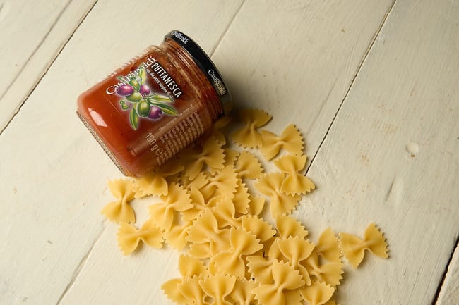 A paradicsom édes íze az olívabogyók erőteljes ízével kontrasztot teremt, miközben a hagyma, a kapribogyó, a bazsalikom, a petrezselyem és a bors mediterrán ízzel és intenzív aromás illattal gazdagítja az ételt. A konyhakész puttanesca szósz ideális bármilyen tésztaételhez, mi a fusillit ajánljuk hozzá.