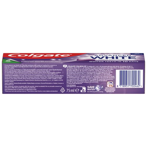 A Colgate® Advanced White Purple fogkrém nemcsak egy ragyogó mosolyt biztosít, hanem meg is őrzi annak fényét, megelőzve az újabb foltok kialakulását. Emellett frissíti a leheletet és véd a fogszuvasodás ellen is, így a szájápolási rutinod nélkülözhetetlen eleme lesz.