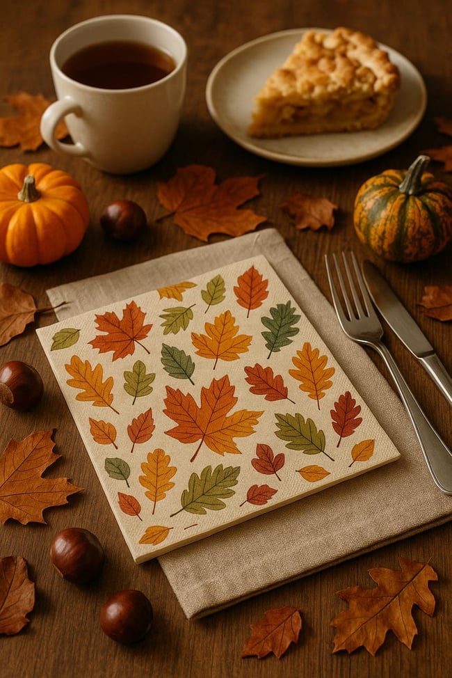 Ezek a 33x33 cm-es, 3 rétegű, prémium minőségű szalvéták nemcsak praktikusak, de igazi látványelemek is egy őszi terítékben.